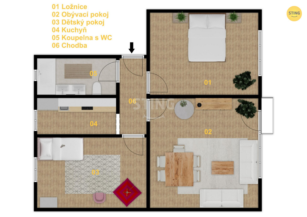 garáží o dispozici 3+1 a užitné ploše 73 m?. Dispozice bytu nabízí