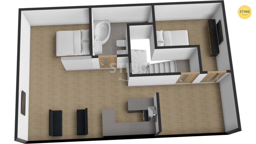 kompletní rekonstrukcí. S jižními okny a umístěním ve druhém patře