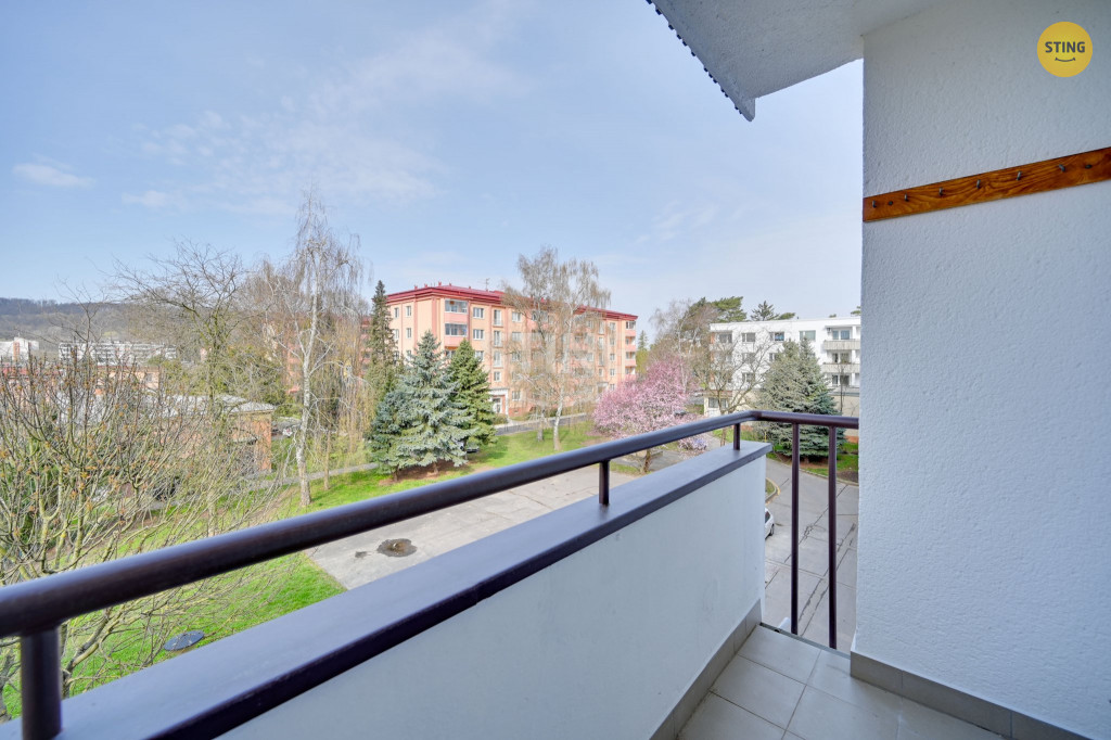 klidnější části se zelení. Koupelna a toaleta jsou odděleny. Byt je