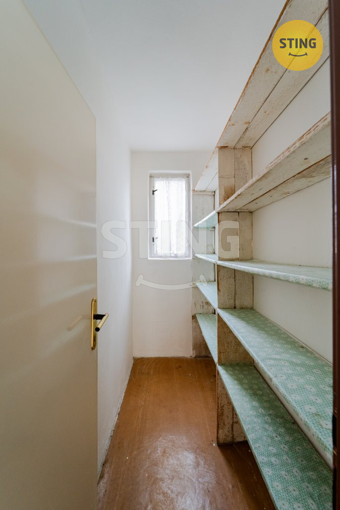 samostatná toaleta, komora, vstup do sklepa a schodiště do patra. V horním