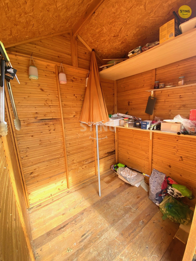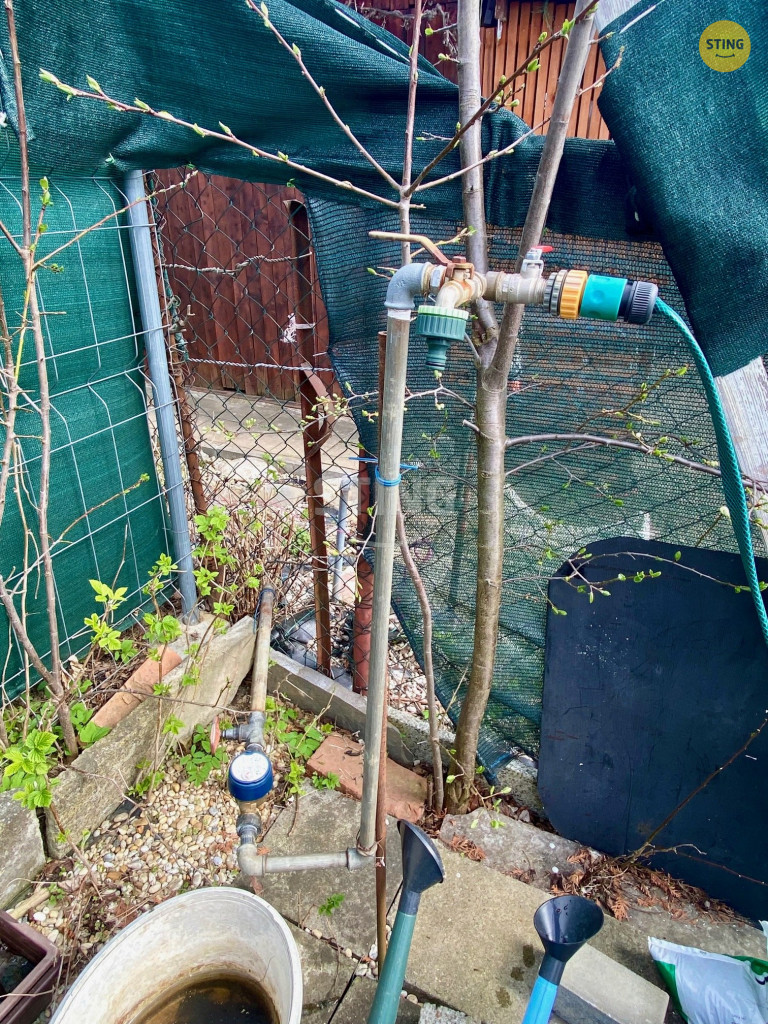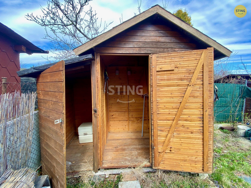 Na pozemku se nachází menší zahradní chatka, suché wc a pitná voda.
