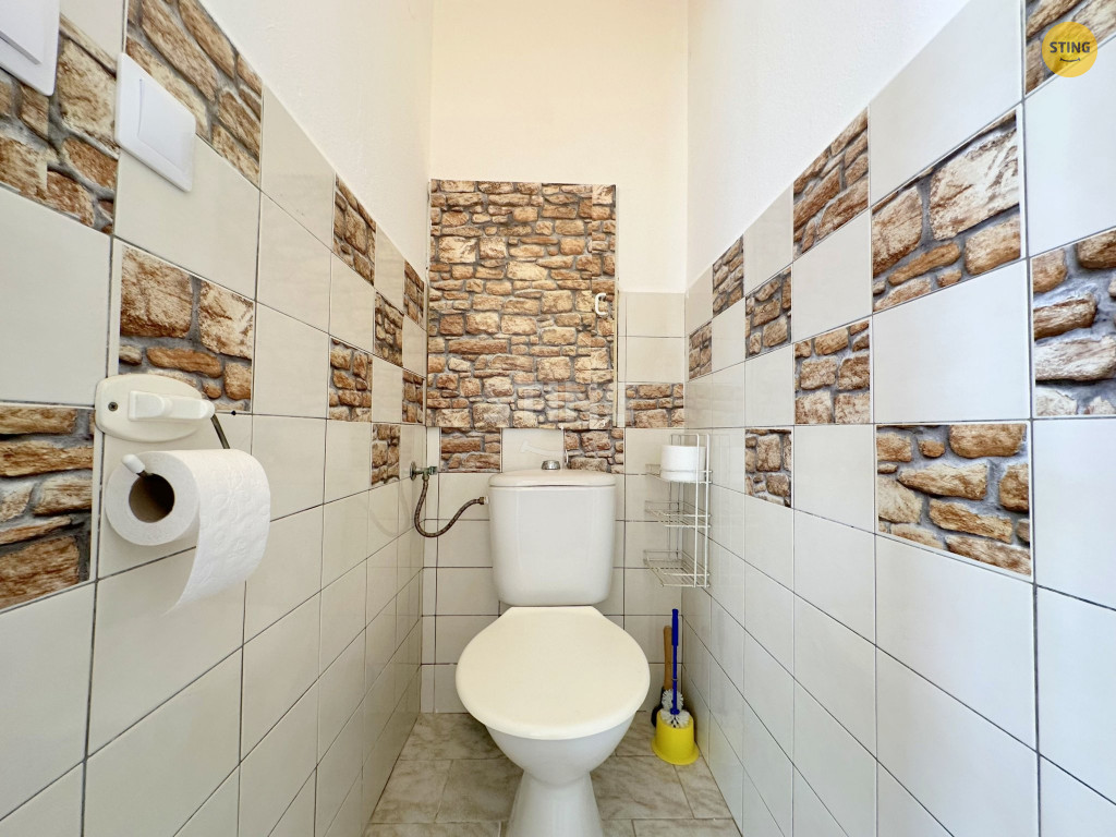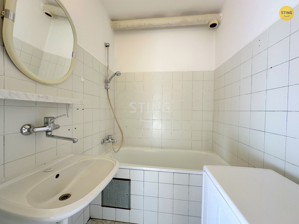 Součástí bytu je koupelna s vanou a samostatné WC, což oceníte při