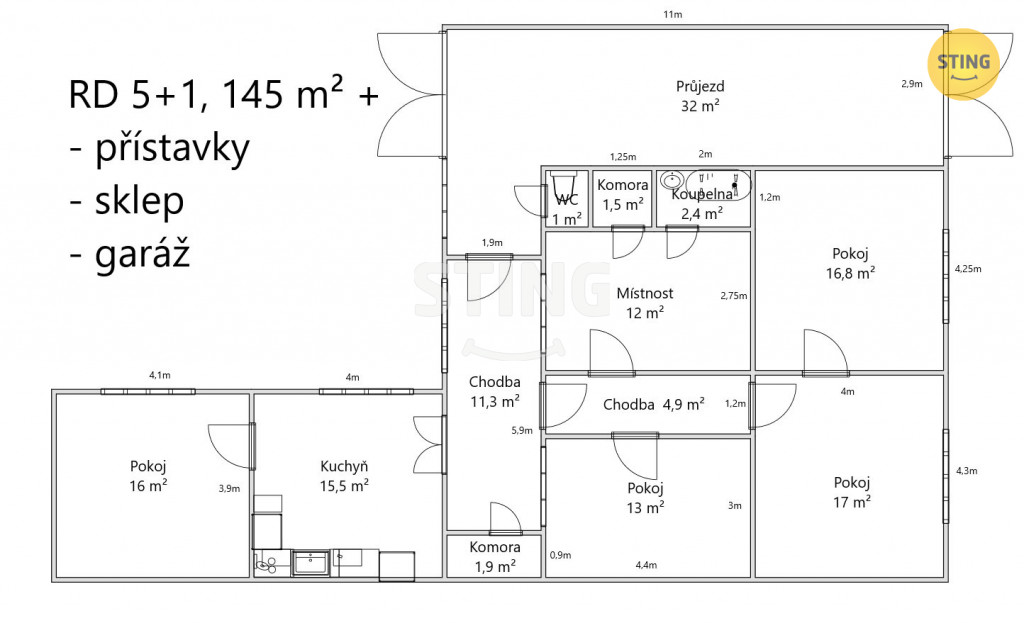 větší rodinu. Velkým benefitem je prostorný průjezd, který umožňuje