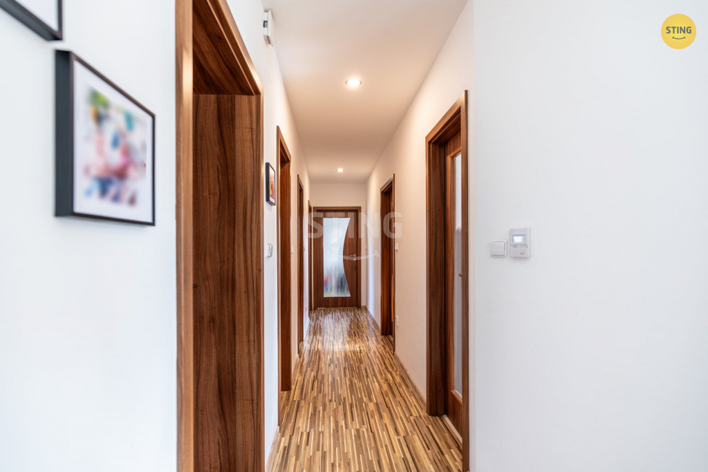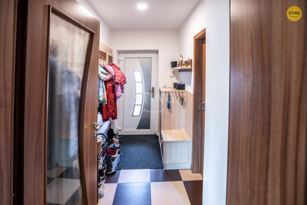 praktickou dispozici: tři samostatné pokoje, prostorný obývací pokoj