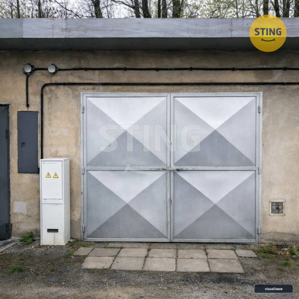 Garáž je v dobrém, udržovaném stavu. Podlaha je betonová, vjezdová vrata