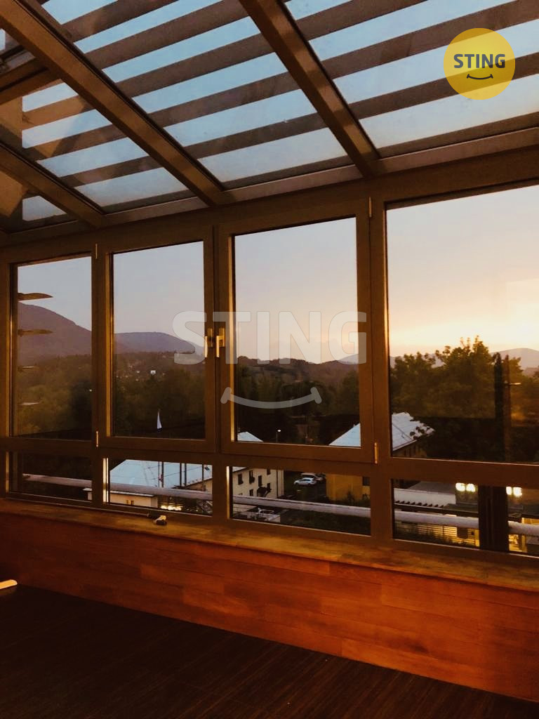samostatnou toaletou. Obývací pokoje a terasa jsou bohatě proskleny a